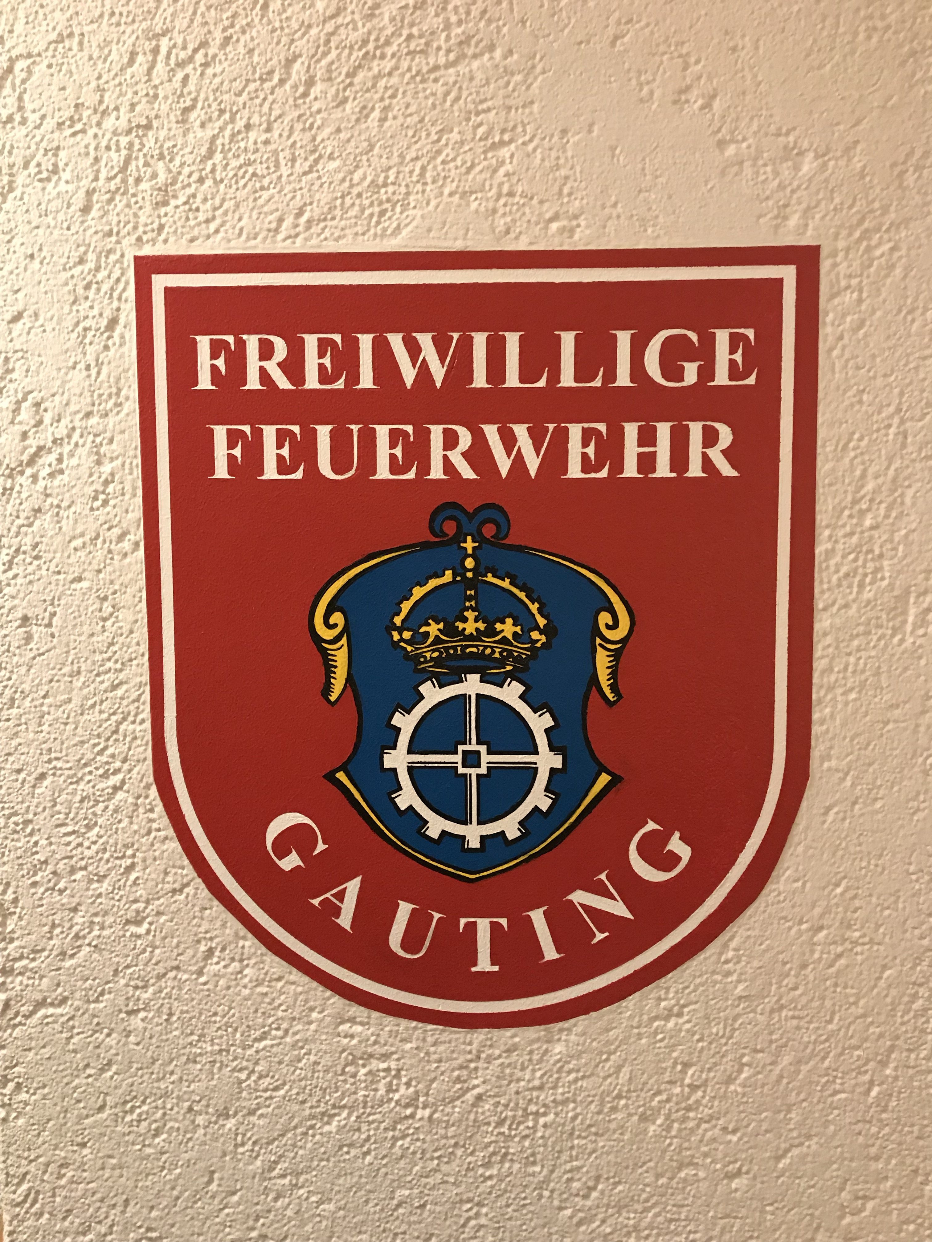 Einen neuen Anstrich erhielt das Stüberl der Feuerwehr Gauting im Jahr 2017. Seither ziert eine der „Säulen“ auch das übergroße Ärmelabzeichen der Freiwilligen Feuerwehr Gauting.