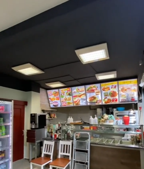 Wände, Decke und Logo wurden hier aus unserem Hause gestaltet 🎨 Das Logo haben wir auf Kundenwunsch mit Verwendung von Blattgold und LED-Leisten veredelt 💫 [gallery size="large" columns="2" link="file" ids="11532,11531"]